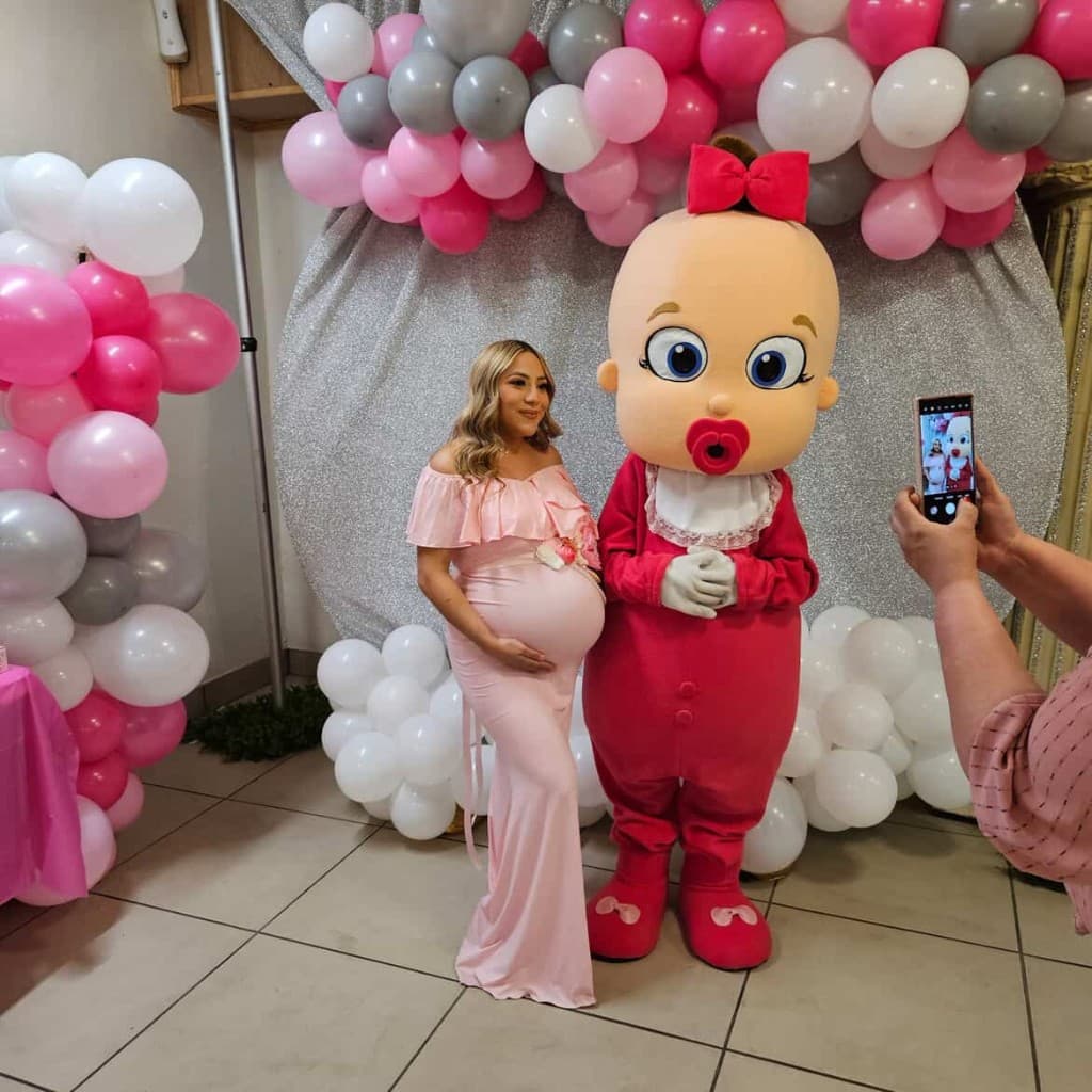 Costumed characters and mascots for baby showers — big baby outfits, themed favorites, 360 booth moments, and more (baby shower bookings only).
